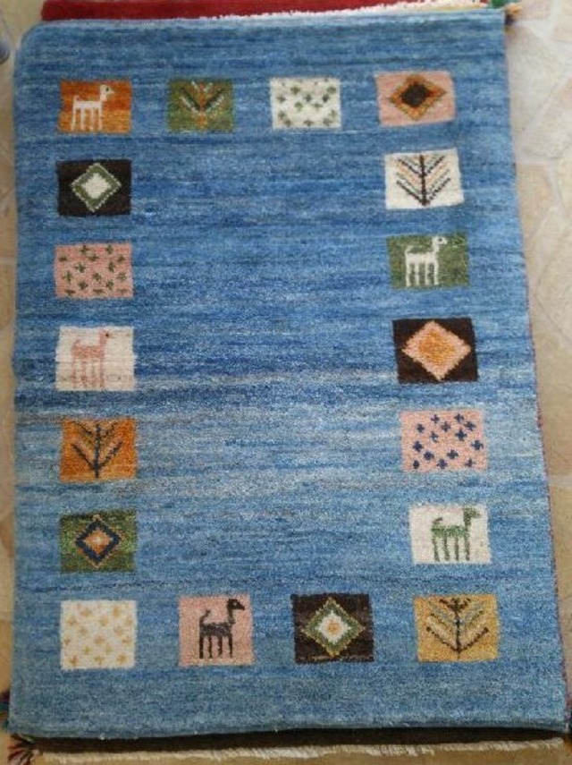 121cmX81cm Wool 100% 手織りのギャッベで、独特な柄や色使いが魅力。丈夫で長く使える。 このギャッベは、ペルシャ系の民族が手織りしたもので、全く同じ模様や色使いのものはありません。そのため、あなただけの世界に1枚だけのギャッベを手に入れることができます。 独特な柄や色使いは、お部屋のアクセントや雰囲気を一気に変えることができます。丈夫で長持ちするので、何度もお使いいただけます。 あなたのお部屋に、ペルシャの風を感じるギャッベを飾ってみませんか。