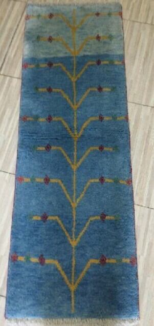 このギャッベは、手織りによる一点もののラグです。個性的でアンティークな雰囲気が漂います。サイズは145cmX49cmと、コンパクトな作りなので玄関先やベッドサイドのマットとしても、おしゃれなアクセントとして使えます。素材には、羊毛を使用しており、柔らかな手触りと高い耐久性をあわせもっています。